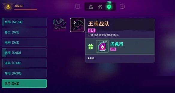 達(dá)成條件為在單局中同時(shí)擁有10個(gè)紫色暗靈,完成任務(wù)可解鎖特工玄宇。
