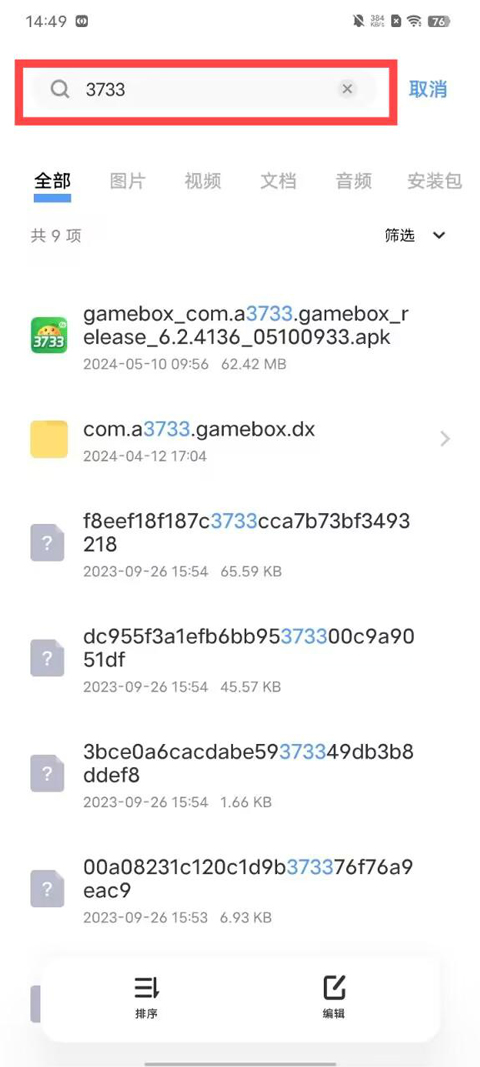 2.在文件管理的最近文件記錄中,找到3733的圖標(biāo),點擊安裝即可。