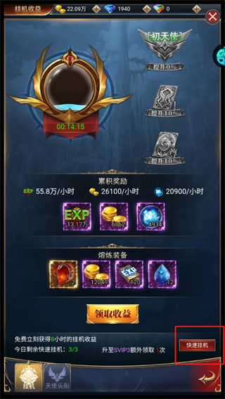 6、掛機(jī)獎(jiǎng)勵(lì)不要忘了領(lǐng)取后續(xù)還能開啟快速掛機(jī)。