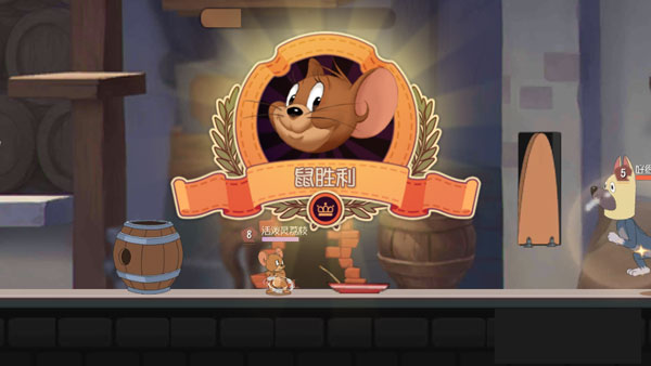 玩家需要收集到5個(gè)奶酪,收集完畢會(huì)在地圖任意地方出現(xiàn)一個(gè)墻洞,玩家需要借助地上的雪球、果盤、盤子將它打破。打破之后,隊(duì)友或者自己進(jìn)去就獲得勝利了。