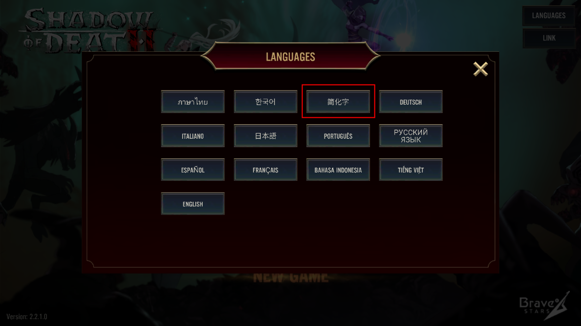 1、下載并打開游戲后,玩家點(diǎn)擊右上角的語言可以設(shè)置選擇“簡化字”即可切換中文。