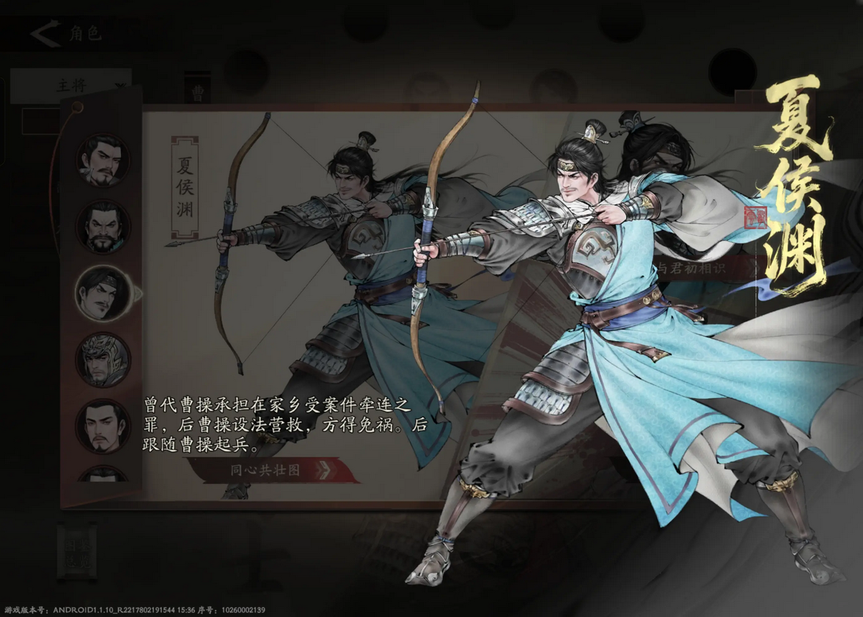 夏侯淵的核心還是暴擊,所以盡量選擇基礎(chǔ)屬性和天賦效果與暴擊有關(guān)的。這里前期我推薦麹義或者武安國。麹義的天賦效果可以完美的契合遠程暴擊主將,而武安國雖是一張藍卡,但基礎(chǔ)屬性十分契合夏侯淵,而且獲得十分簡易??梢酝昝雷鳛檫^度使用。后期的話較為通用的臧霸和閻柔無疑是優(yōu)選。