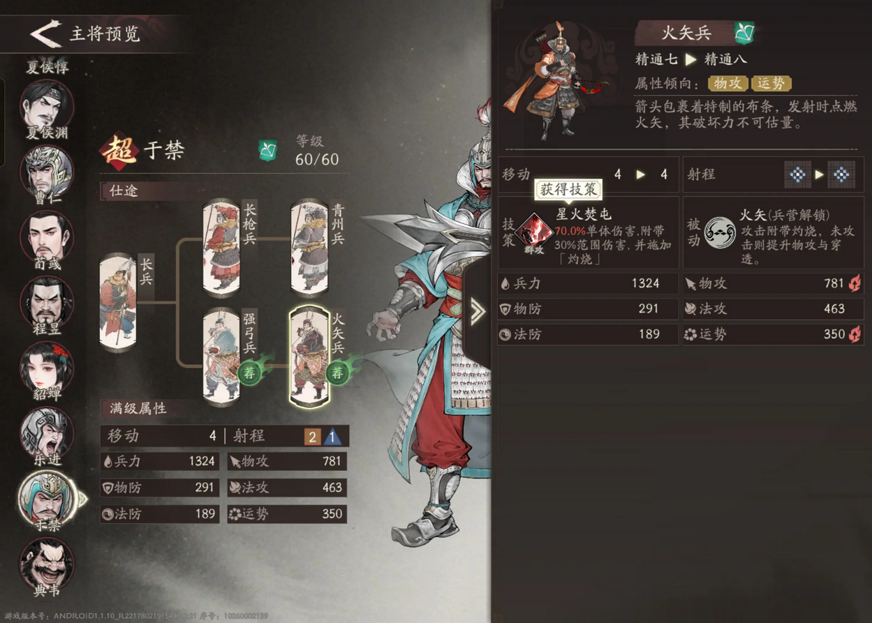 這里推薦物法雙修的火矢兵,持續(xù)法傷里除了中毒為數(shù)不多的灼燒傷害也沒讓人失望,附加28%的額外法傷。暴擊更是達到了350,比夏侯淵的騎射手要高。