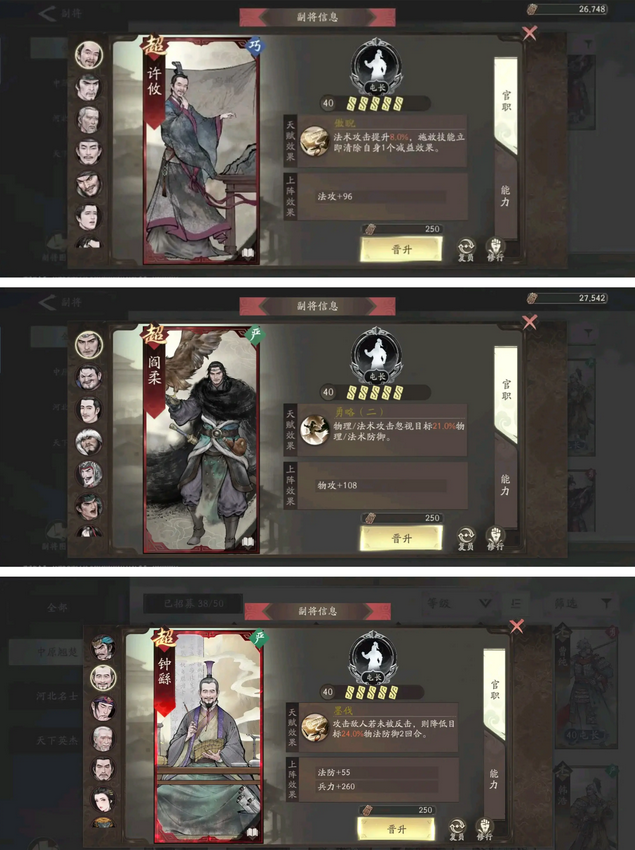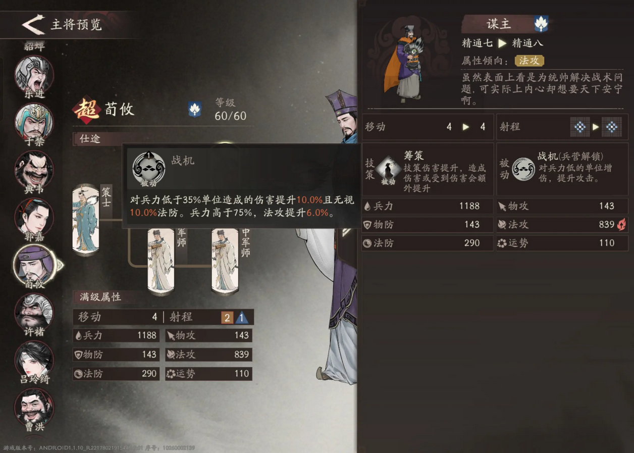 貂蟬(增攻增怒氣),曹仁(神),荀彧(增益),陳群(加移動)