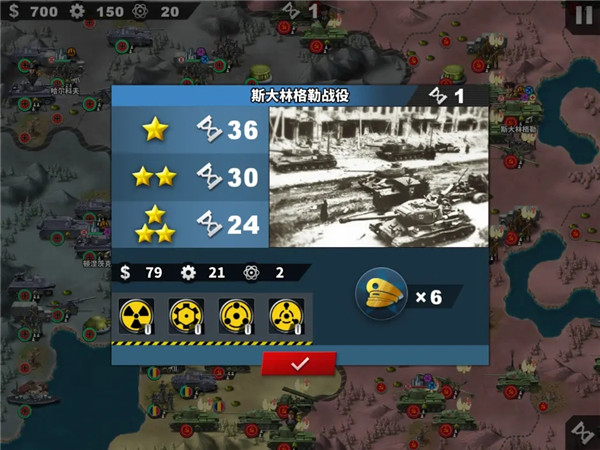 在這里,你需要使用你自己打造的軍團(tuán),有的是步兵 有的是坦克 有的是火炮等,主要目標(biāo)為消滅入侵的敵人,當(dāng)然也是有回合限制——一般在15回合。 每天刷入侵可以賺30-50勛章,也是少數(shù)賺取勛章途徑之一。不過注意,軍團(tuán)單位死了不可以復(fù)活。