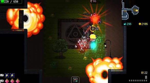 游戲整體節(jié)奏還算是比較快地,玩起來(lái)感覺(jué)有些爽快。玩法跟傳統(tǒng)地牢類游戲,特別是同類型的帶有roguelike元素的2D 射擊游戲 差不多。所有關(guān)卡中的地圖全都是隨機(jī)生成,人物能夠攜帶近戰(zhàn)武器和遠(yuǎn)程武器兩種,在流程中玩家可以通過(guò)收集怪物掉落的以及開(kāi)寶箱獲得的寶物提高角色的屬性。