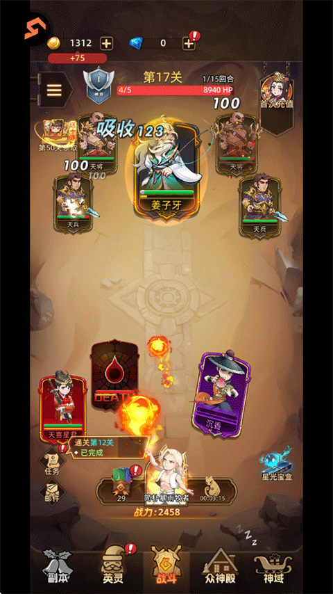 4、豐富的獎(jiǎng)勵(lì)機(jī)制:通過(guò)不斷挑戰(zhàn)和通關(guān),玩家可以獲得符箓等獎(jiǎng)勵(lì),用于召喚新角色或增強(qiáng)已有角色的實(shí)力。