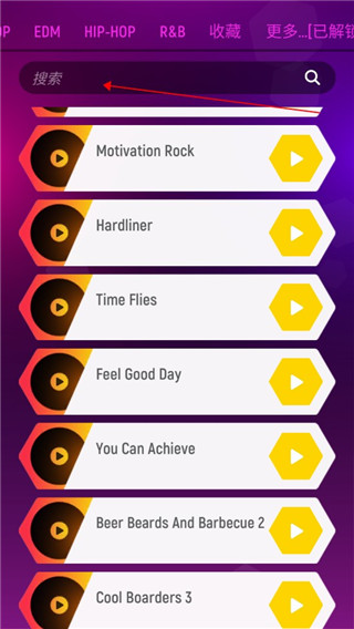 2、選擇你想玩的歌曲,或者直接搜索也可以;