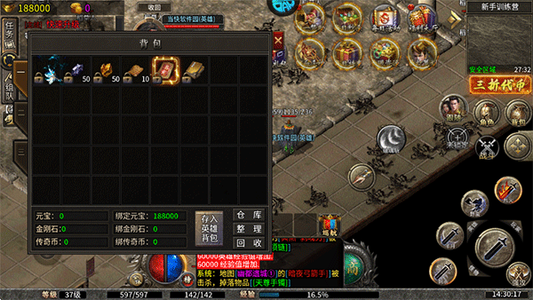 6、刷怪獲得的道具獎(jiǎng)勵(lì)可以點(diǎn)擊屏幕右側(cè)的背包以查看。