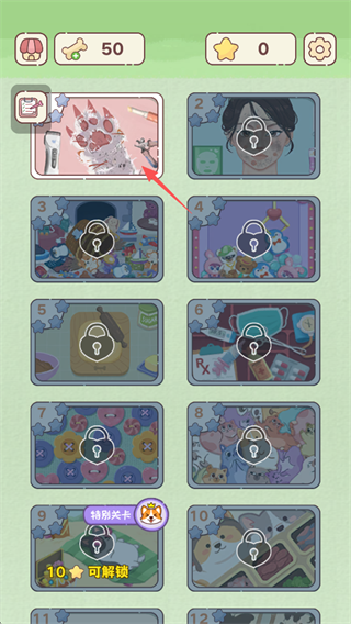 3、第一關(guān)是幫助貓咪修復(fù)貓爪