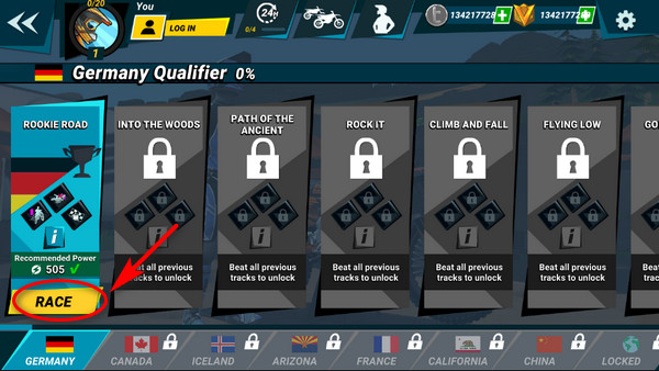 2、選擇賽道,然后按RACE就開始匹配對手了。