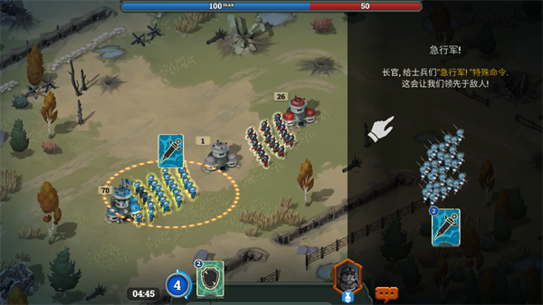 5、當(dāng)雙方同時(shí)爭奪同一地堡時(shí),可發(fā)動(dòng)“急行軍”快速突襲,搶先占領(lǐng)并借助地堡的防御加成,抵御后續(xù)敵軍的反撲。