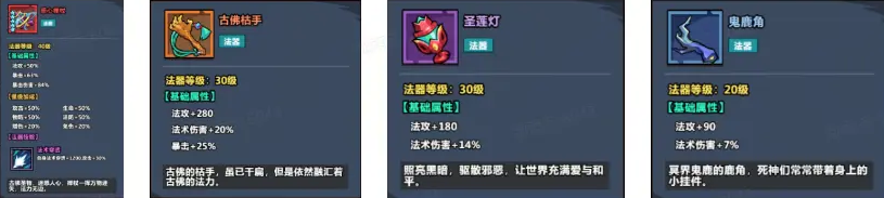 燃燈佛:優(yōu)先考慮惑心禪杖>焰晶盤/古佛枯手>祥紋甲>鬼鹿角