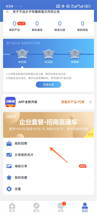 5、發(fā)布成功后,點(diǎn)擊【我的-我的招聘】