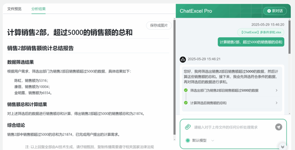 提示詞:“計(jì)算銷售2部超過(guò)5000的銷售額的總和。