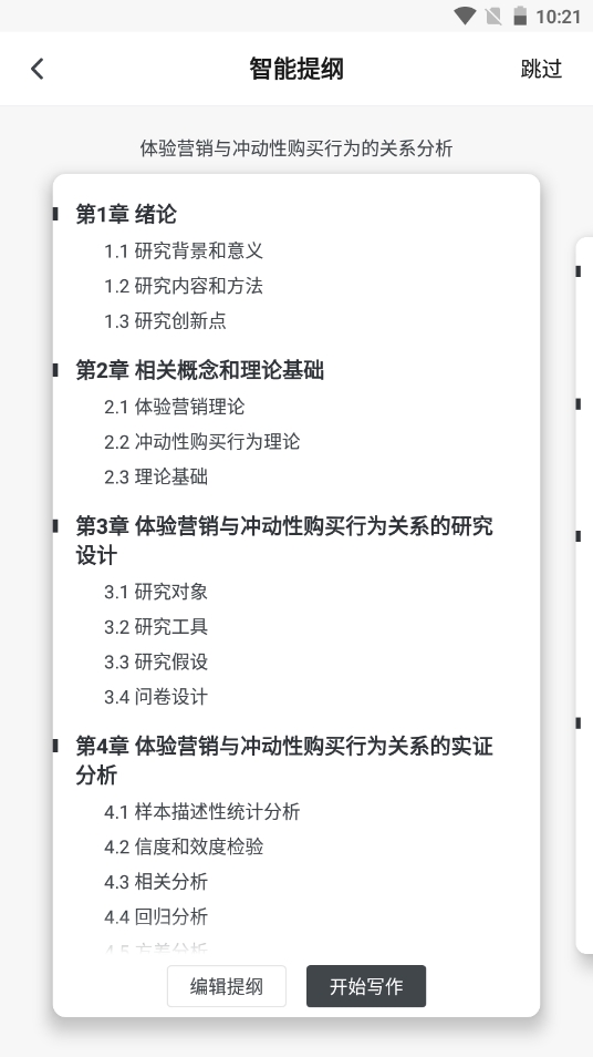 2、然后軟件就會(huì)為用戶生成提綱;如果點(diǎn)擊右上方的【跳過】將不享受智能提綱推薦;