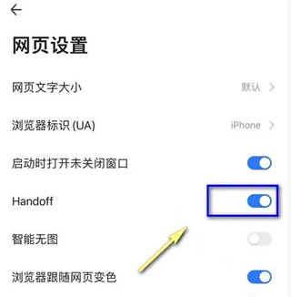 3、進(jìn)入網(wǎng)頁(yè)設(shè)置,將handoff后面的開(kāi)關(guān)打開(kāi)即可,如下圖所示