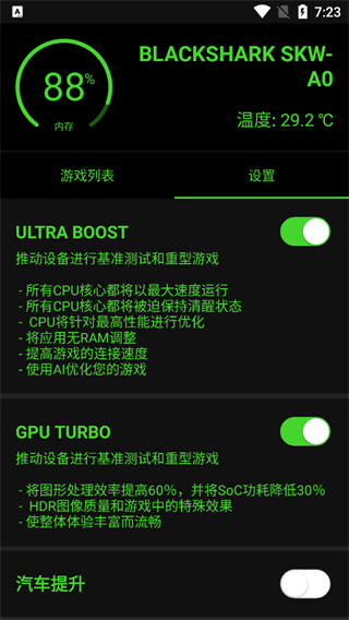 3、在設(shè)置界面將【ULTRA BOOST、GPU TURBO】全部打開