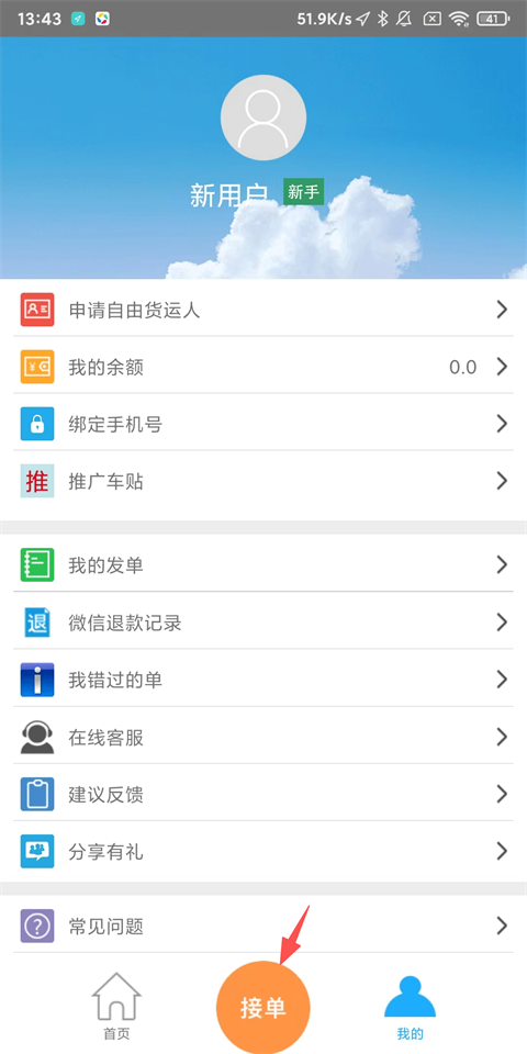 1、下載注冊并登錄貨運(yùn)幫APP,點(diǎn)擊下方接單按鈕;