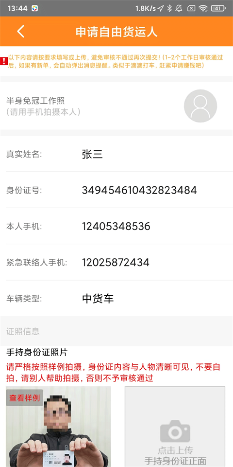 5、完成一系列信息填寫后點(diǎn)擊立即提交,等待平臺審核通過后即可開始接單拉貨。