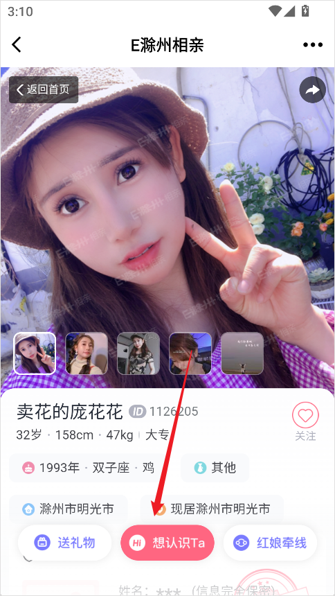 5、最后點(diǎn)擊「想認(rèn)識TA」按鈕,即可發(fā)起聯(lián)系,邁出脫單第一步!